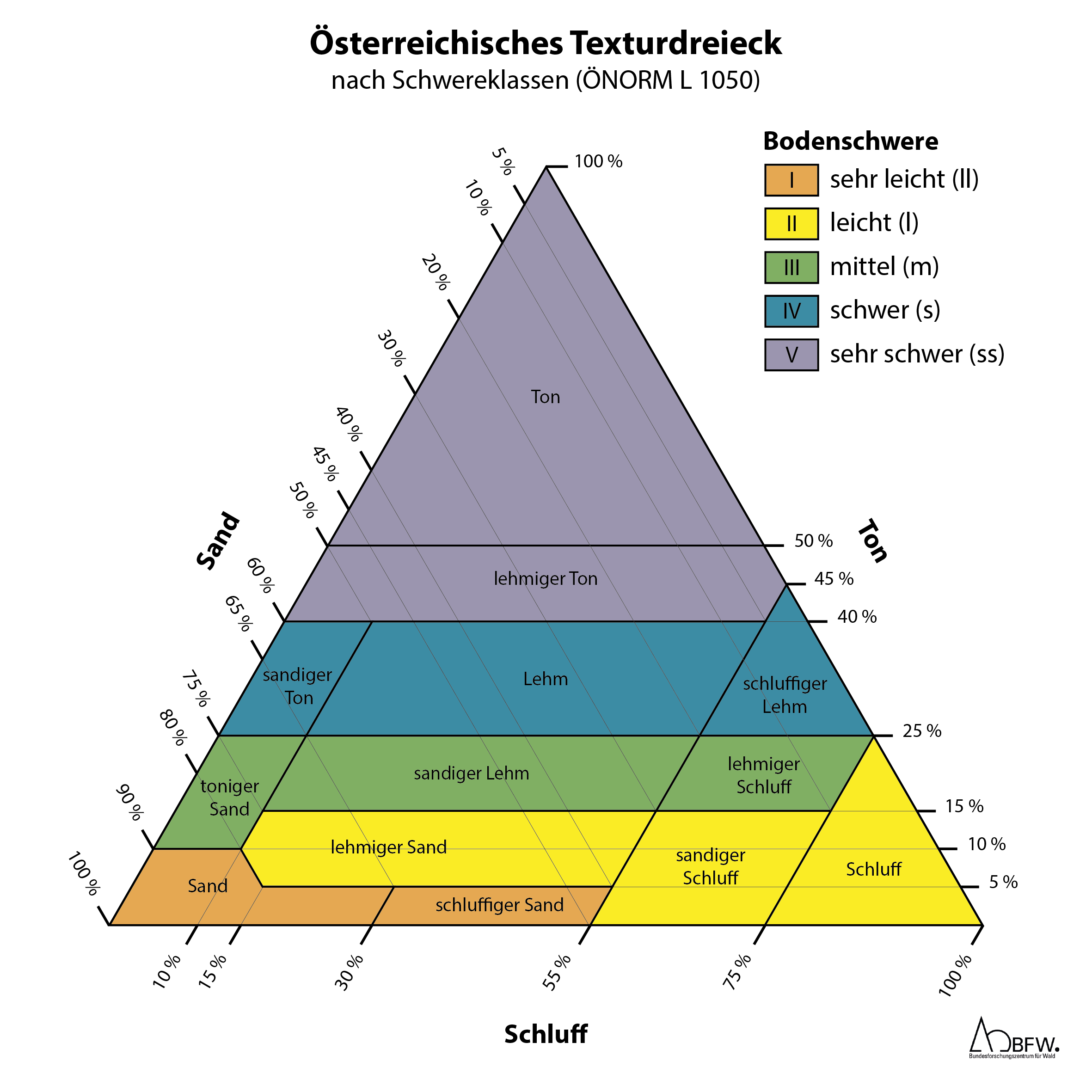 Österr. Texturdreieck nach Schwereklassen gemäß ÖNORM L 1050