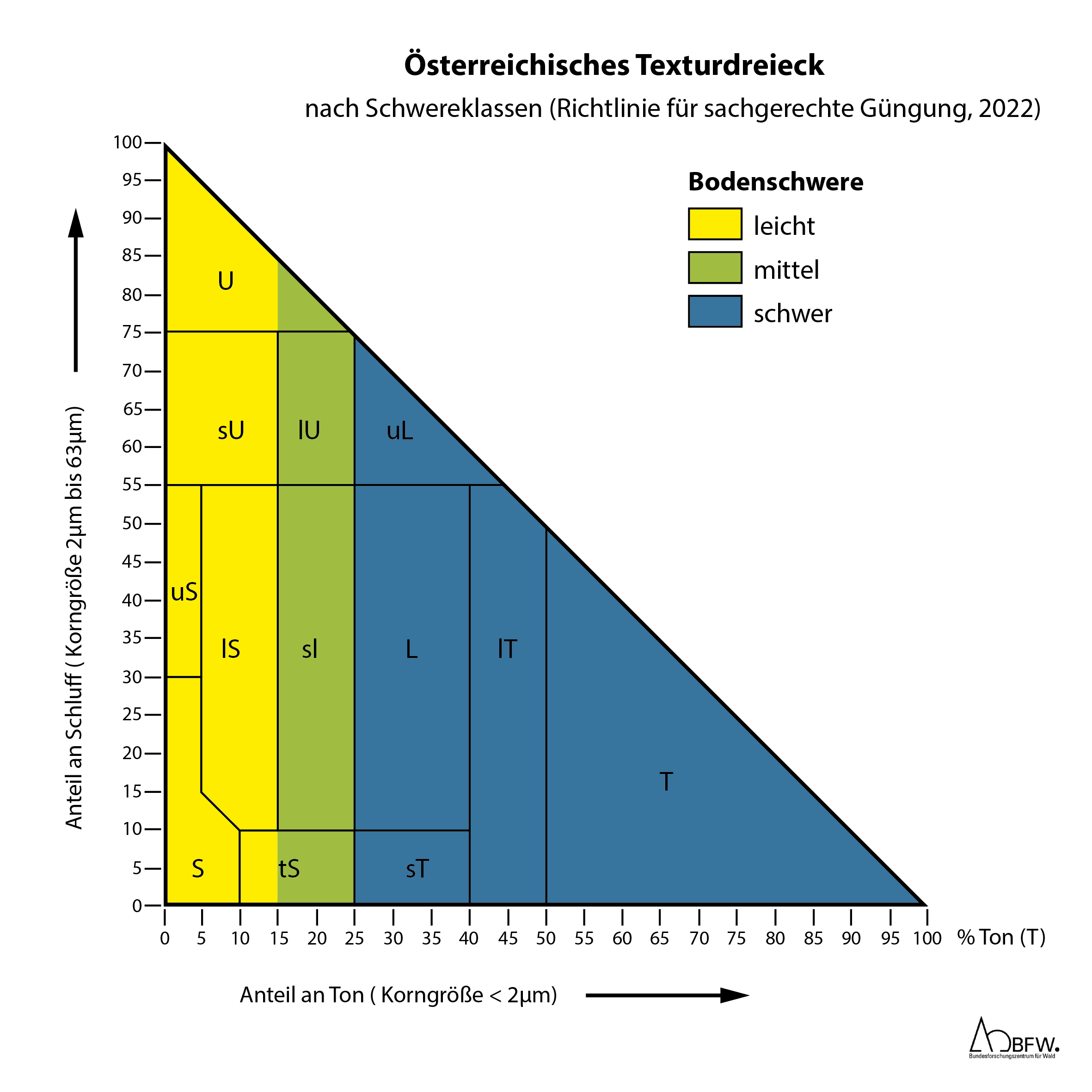 Österr. Texturdreieck nach Schwereklassen gemäß Richtlinie für die sachgerechte Düngung 2022